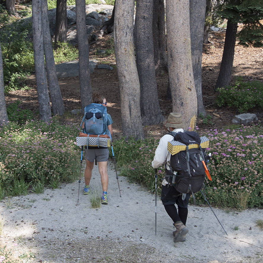 Whew – 8000 feet up, in the smoke-filled air, at nearly 100 degrees – and she had hiked eight miles on the rocky and steep terrain already that day! So we had to do our best to spoil her and return her to the trail the following day clean, well-rested, and well-fed.